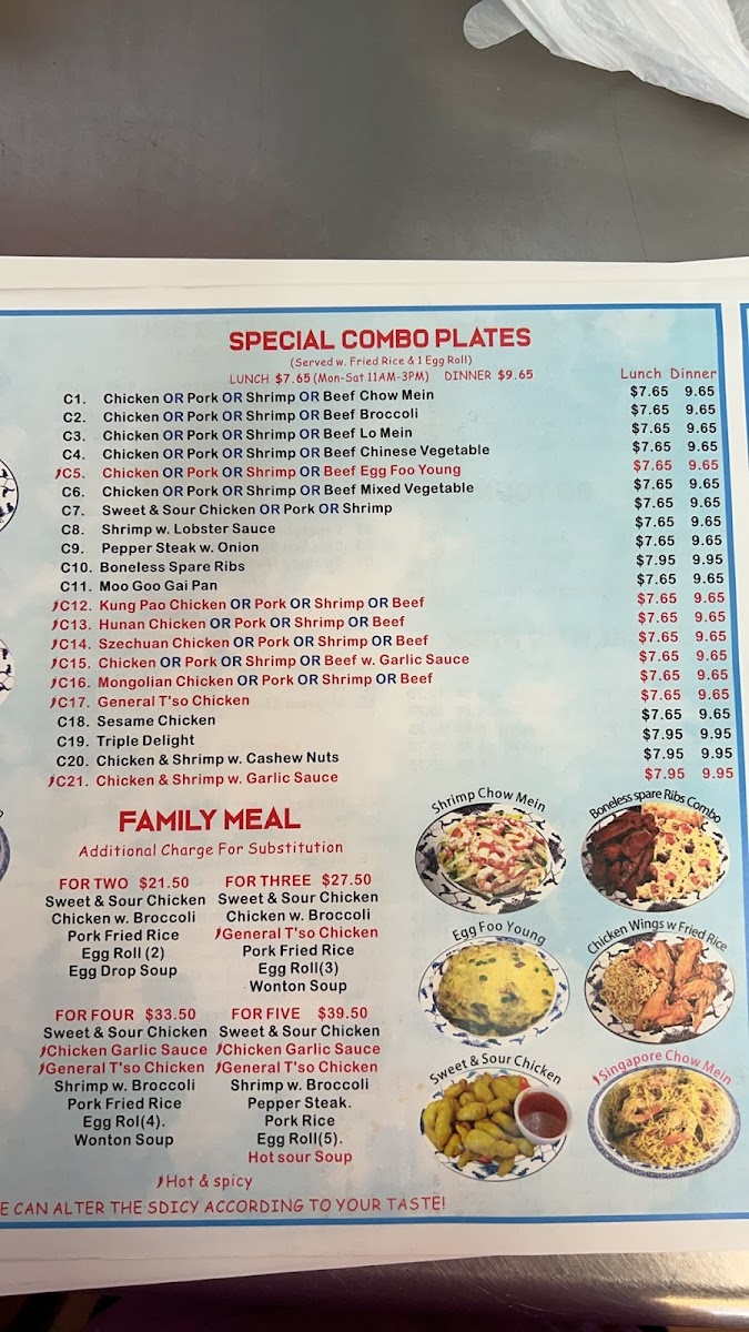 Among the highlights are classic plates like Sweet & Sour Shrimp and Sesame Sesame Chicken, which often appeal to those looking for a flavorful but approachable dinner. The menu’s balance of hearty options and customizable choices suits relaxed gatherings or enjoyable everyday meals in a welcoming, no-frills setting.