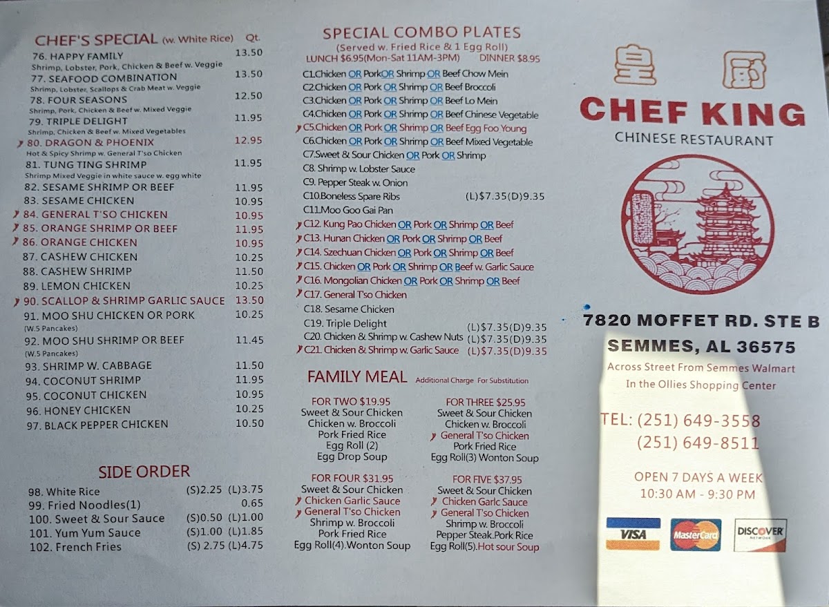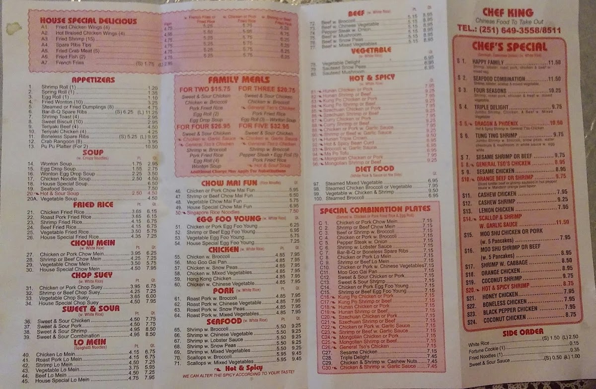 Chef King II Menu